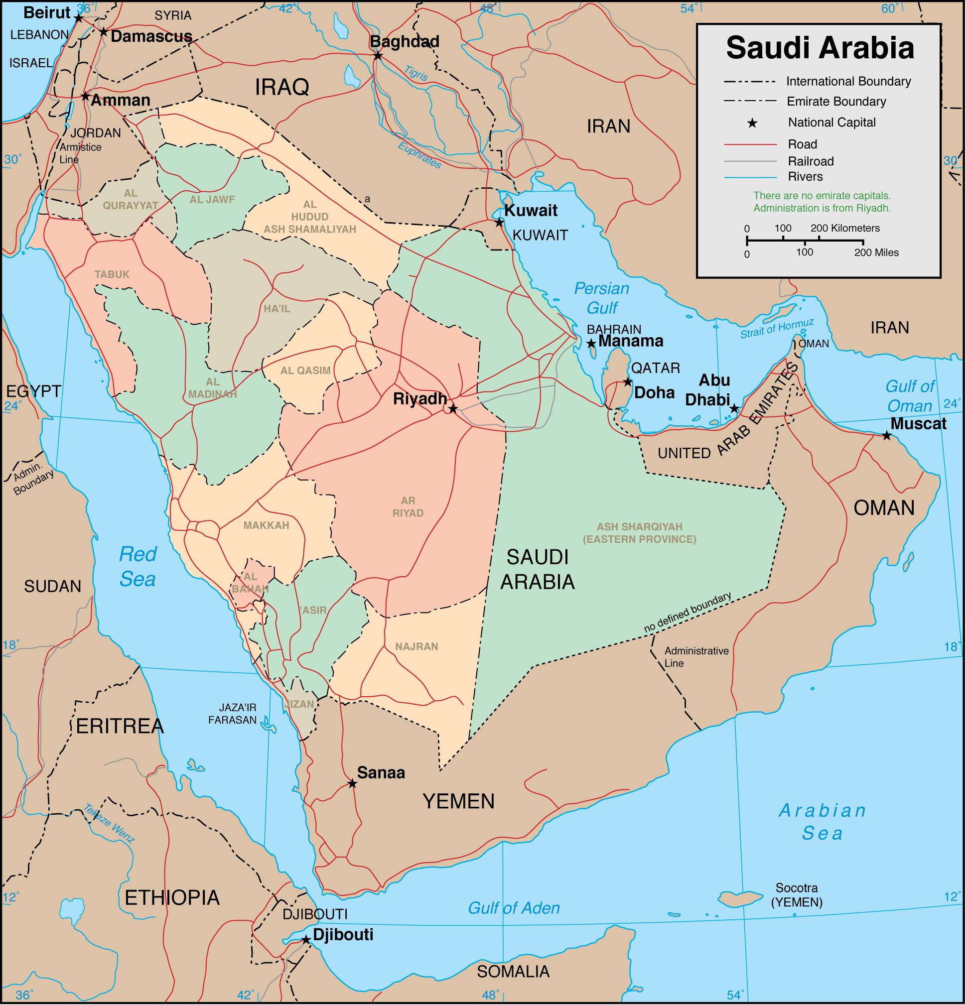 Saudi-Arabia regionen kart